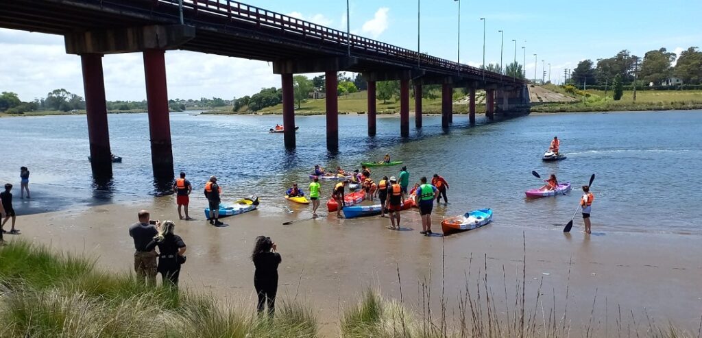 Con un sol a pleno, desafiando el pronóstico del Servicio Meteorológico Nacional, un grupo de chicos con discapacidad representando a la escuela de kayak “Camino al Sol”, realizó este domingo una travesía inclusiva de 6 kilómetros por el Río Quequén, la cual contó con el incondicional apoyo de la Corriente de Pensamiento Bonaerense Mar del Plata/ Batan y personal de Prefectura Naval Necochea.